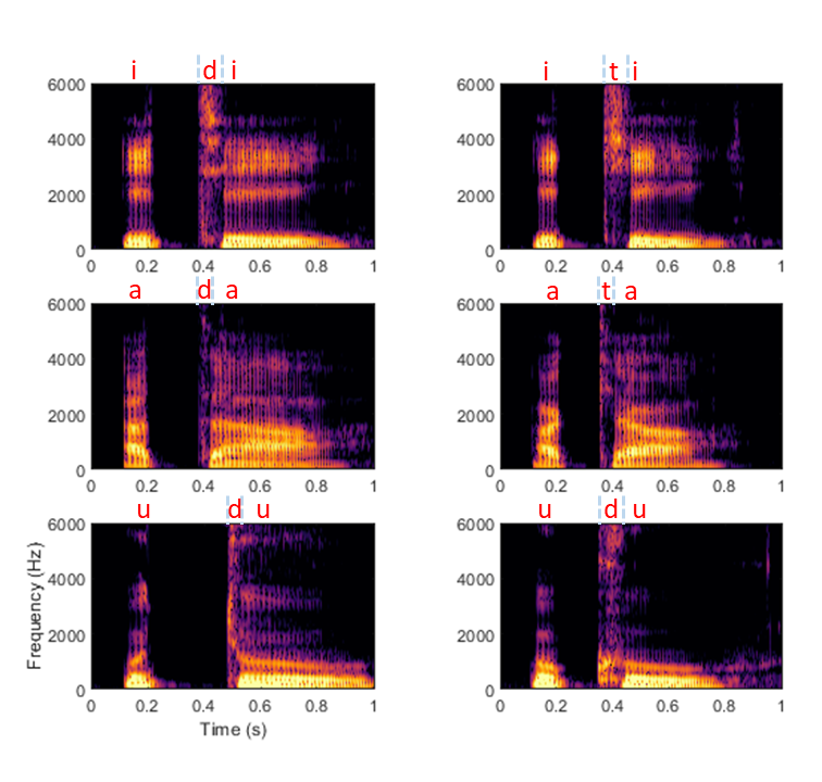 Dans la suite de ce chapitre nous nous intéresserons principalement aux consonnes plosives (/p/, /t/, /k/, /b/, /d/, /g/) correspondent à des caractéristiques transitoires. À nouveau, difficile d’associer transition et plosive de façon univoque (manque d’invariance)